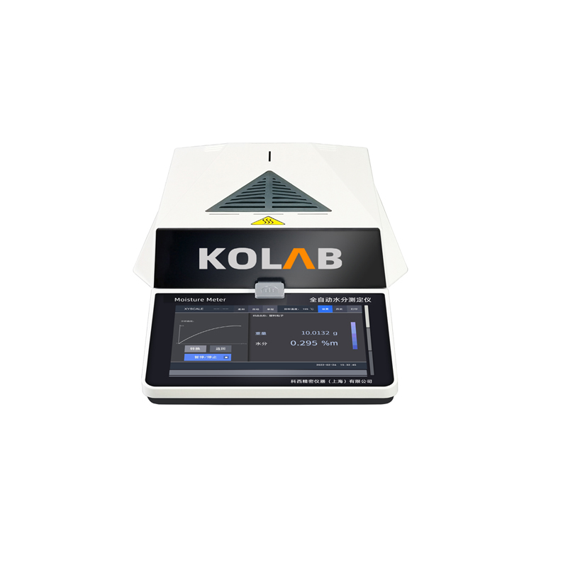 KOLAB品牌KX-F01PRO水分測定儀采用7寸液晶觸摸屏,支持中英文語言切換,內置了多種樣品測試方案可供選擇,儀器軟件樣品名稱、公司、時鐘日期、聯系方式等輸入編輯。儀器支持權限區分,支持管理員、操作員密碼區分權限登錄。系統內存可容納200組設置地址和歷史測試數據查看并可按照GLP/GMP格式記錄保存數據,可外接打印機支持多種規格標簽紙打印。儀器支持WIFI/遠程云服務 手機聯網數據監測(選配),水分儀預熱無需樣品,支持一鍵預熱和溫度校準,稱重校準PRO款內置自動校準裝置。儀器使用超靜音風扇,雙驅電動開關門,無需手動操作。